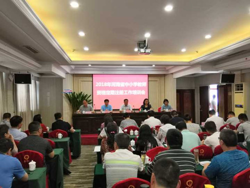 6月13日-15日,河南省2018年中小学教师资格定期注册工作培训会在漯河市举办。河南省教育厅人事处副处长丁建志、河南省教育厅人事处副调研员张庆丽、河南省教师资格认定注册服务中心主任张倩出席培训会。会议由张庆丽主持。